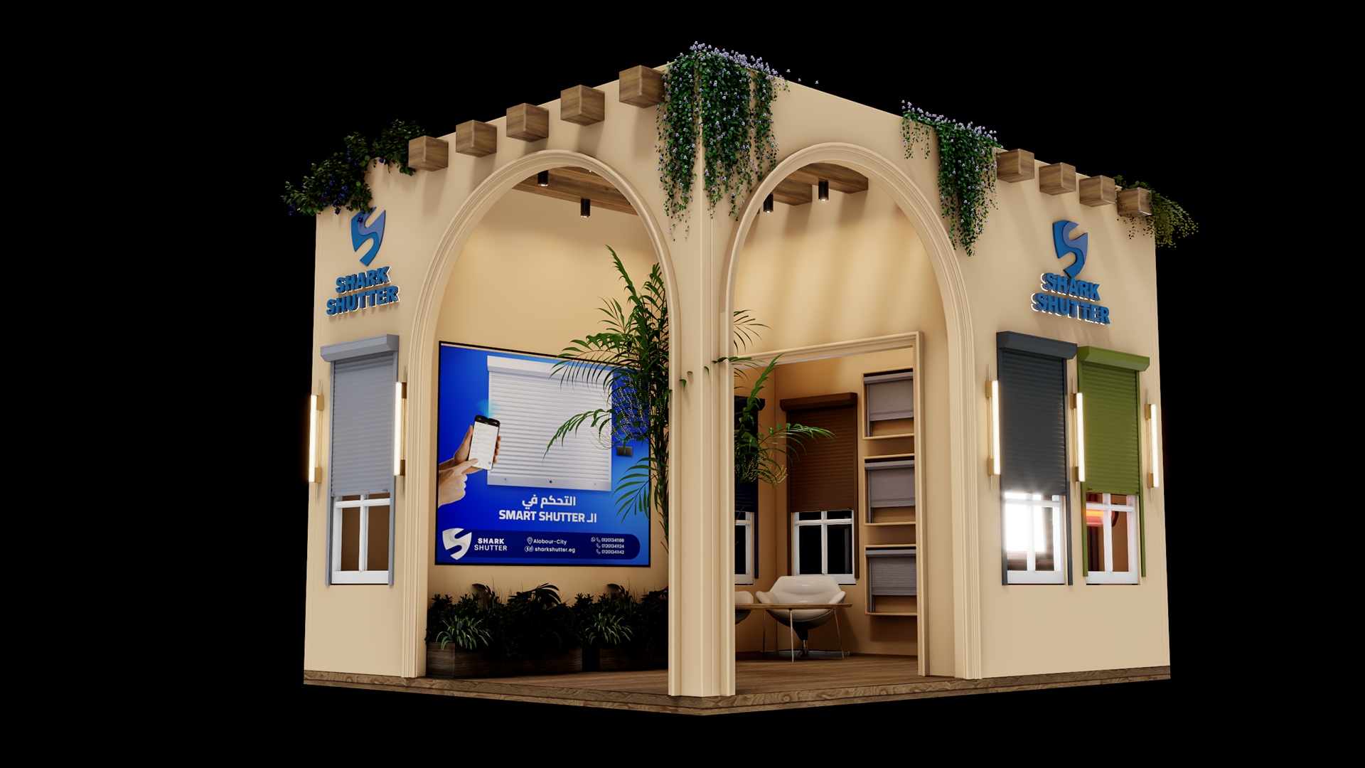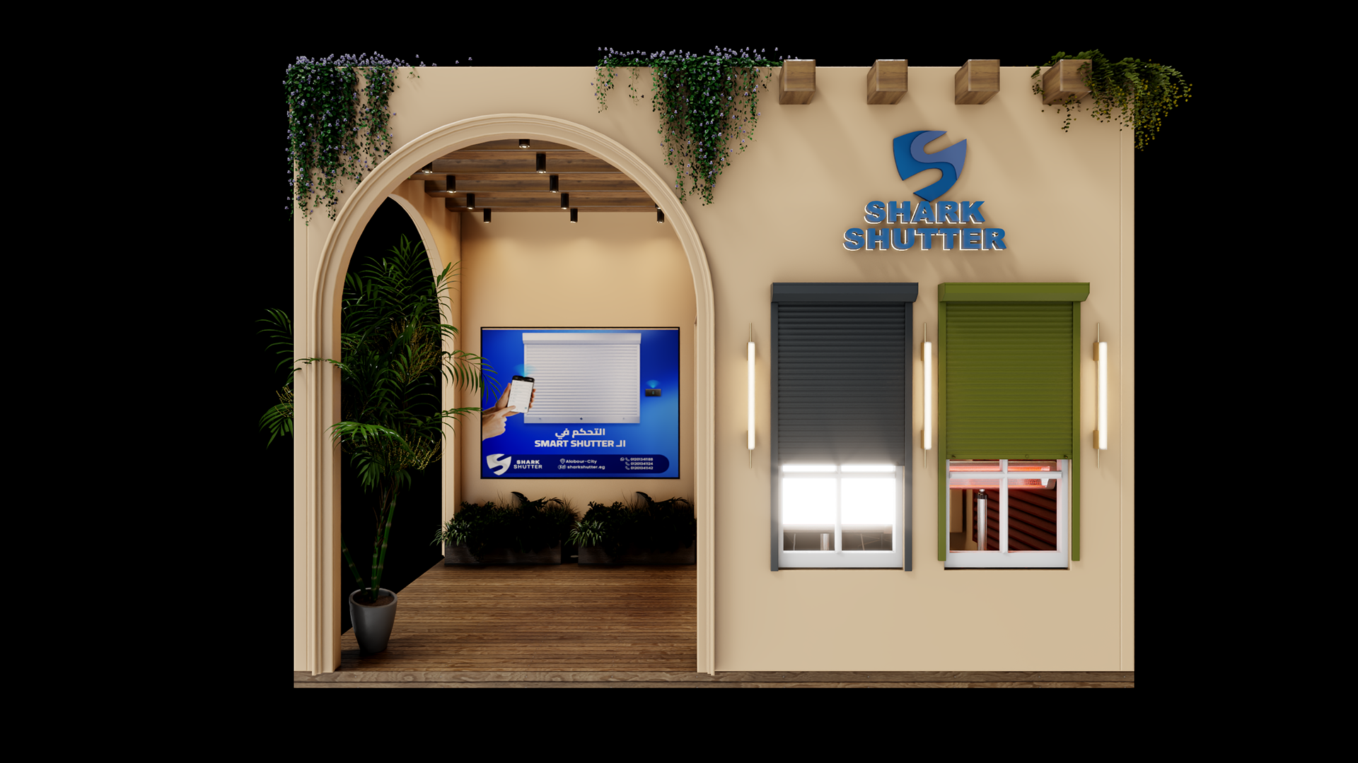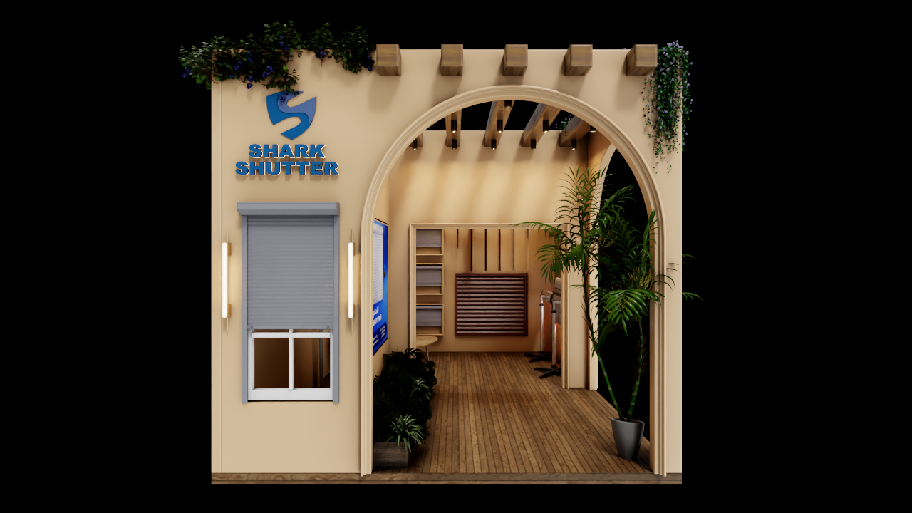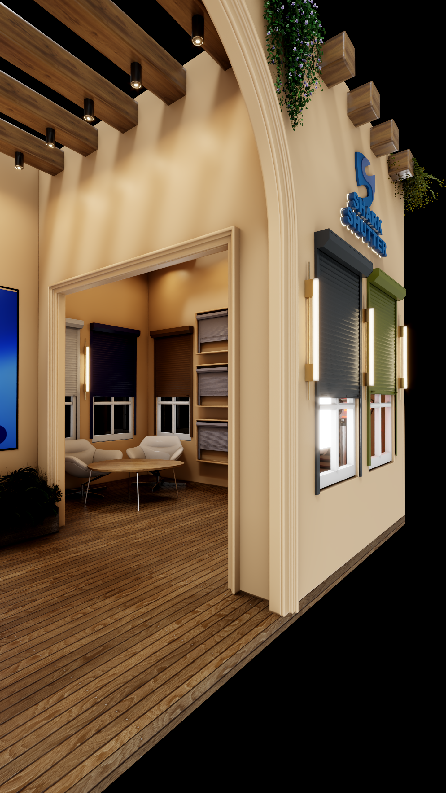 The proposed Interactive Booth is conceived as an architectural experience rather than a conventional exhibition stand. Instead of a typical open booth, the design is developed as a cut-out section of a building façade, complete with a balcony element, allowing visitors to immediately relate the product to a real-life application. This concept places the shutters in their natural context, transforming them from a displayed product into a functional architectural component. Visitors can interact directly with the shutters to experience their key advantages firsthand—demonstrating how they effectively control heat, regulate light, and reduce sound. By engaging with the booth, users gain a tangible understanding of the performance and quality of the system rather than simply viewing it as a sample. The balcony and façade composition add depth and realism to the booth, creating a strong visual identity that stands out within the exhibition hall. This immersive approach not only highlights